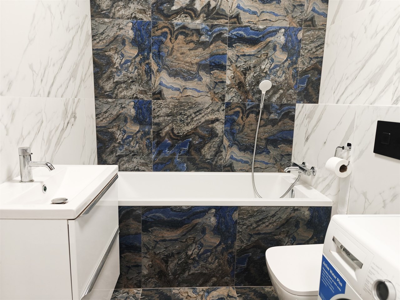 Łazienka z WC wyposażona w wannę, nowocześnie wykończona. W kuchni przygotowane kafle pod zabudowę kuchenną. Na podłodze położone dobrej jakości panele podłogowe. Pomimo niewielkiego metrażu na przedpokoju wydzielone jest miejsce na pojemną szafę. -