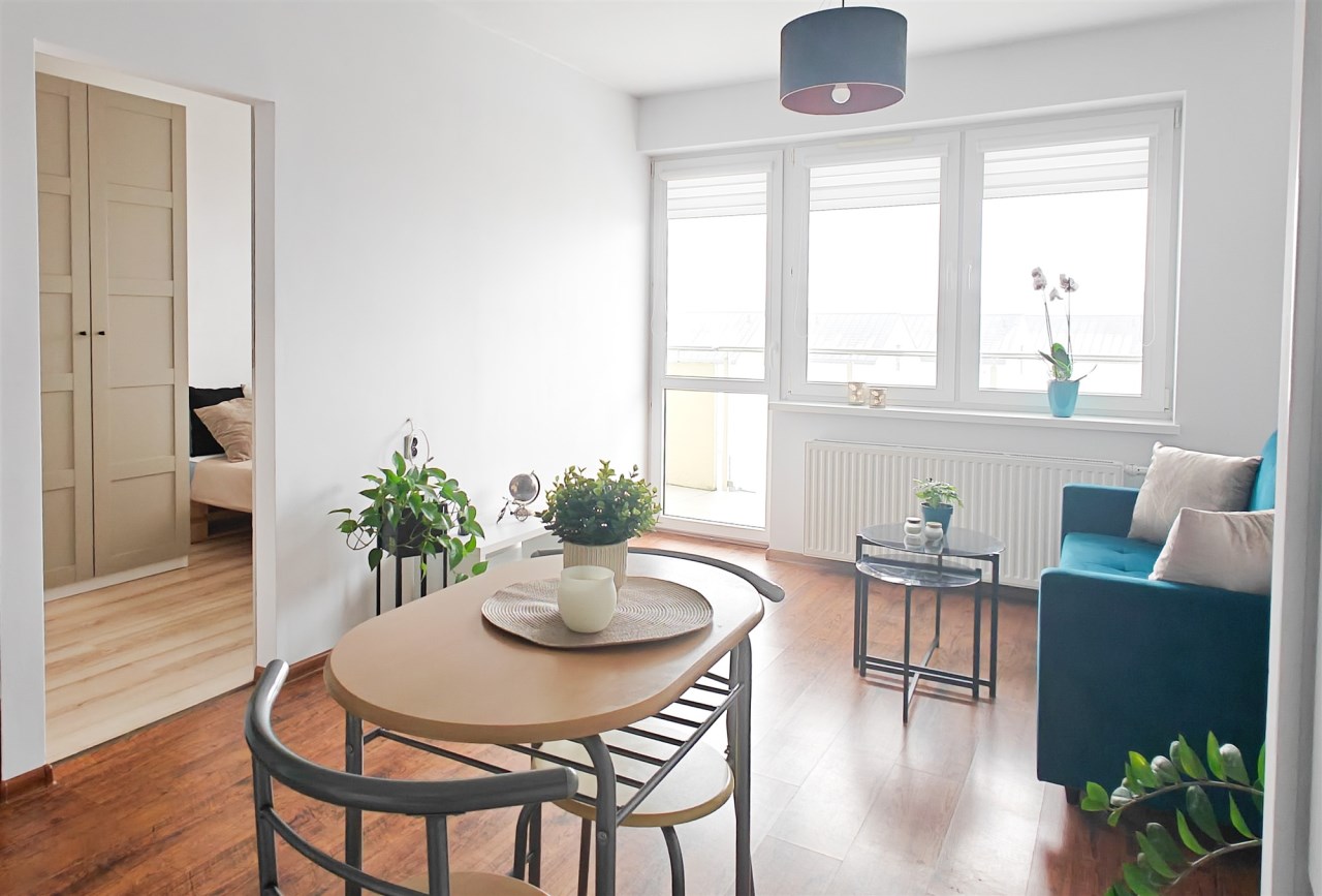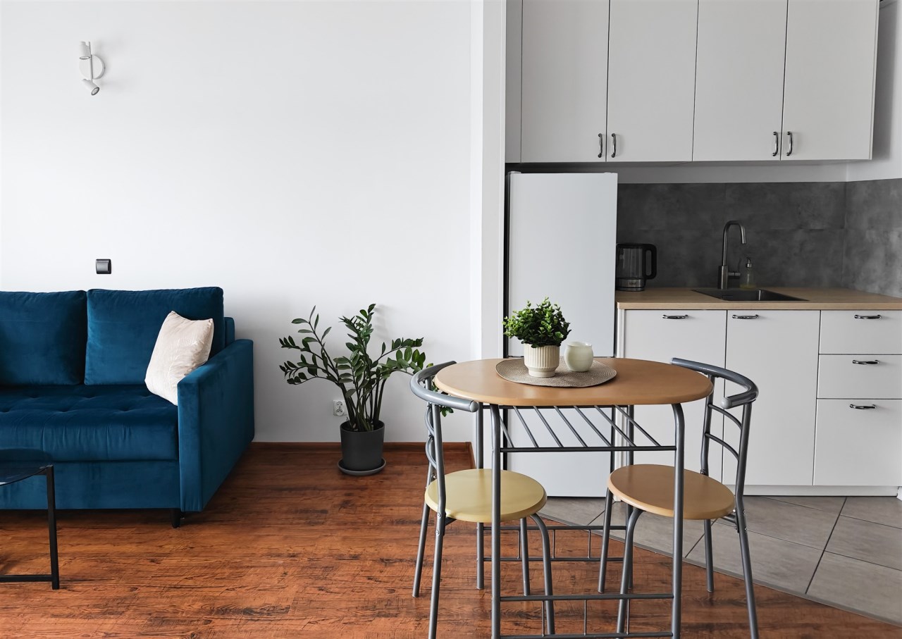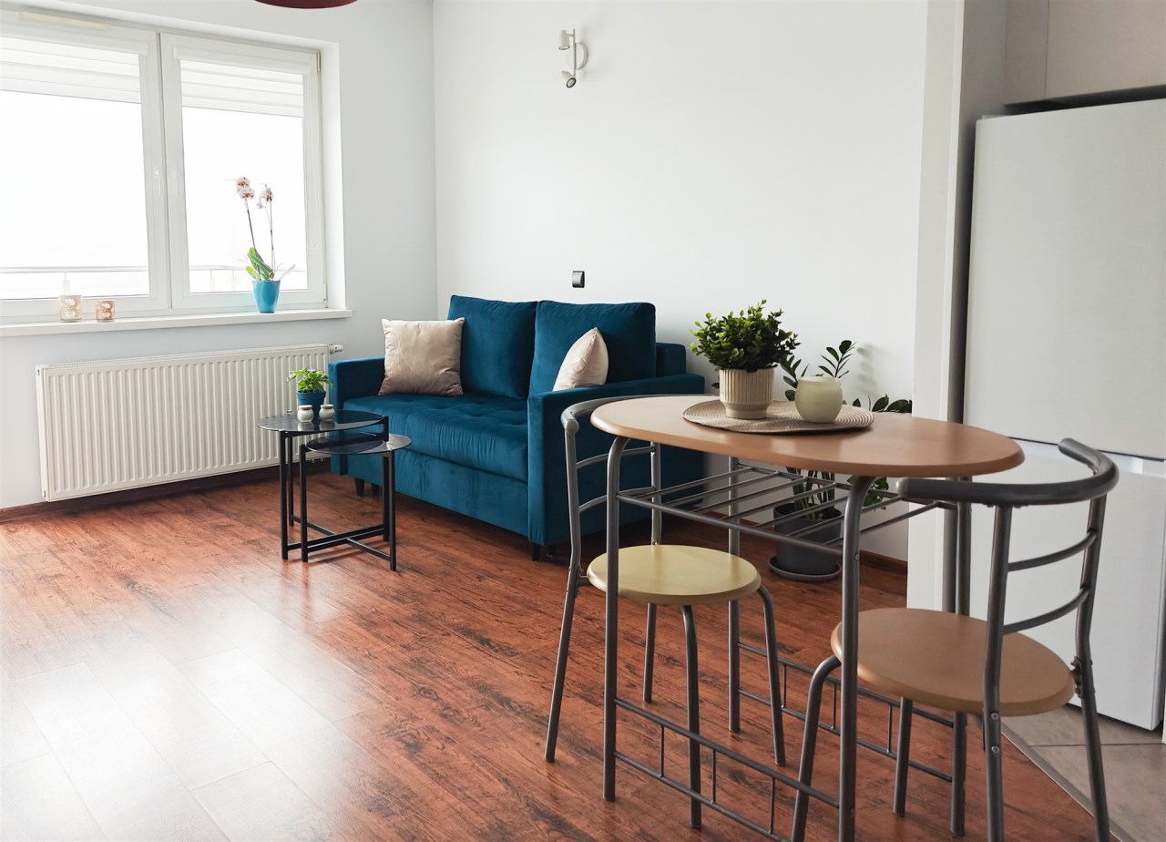 Mieszkanie zlokalizowane jest na III piętrze w 3-piętrowym budynku z 2014 r. Nieruchomość składa się z: SALONU Z ANEKSEM kuchennym, SYPIALNI, ŁAZIENKI Z WC oraz przedpokoju. Mieszkanie o powierzchni 31 m2 zostało zaprojektowane tak by komfortowo mieszkało się tu singlowi lub parze. Na niewielkim przedpokoju znajduje się miejsce na przechowywanie wierzchniego ubrania a duża szafa w sypialni pozwoli na przechowywanie reszty garderoby. Łazienka wyposażona jest w wannę, umywalkę, szafki na przechowywanie oraz pralkę. Kuchnia wyposażona jest w wolnostojącą lodówką, 2-palnikową płytą grzewczą, piekarnik i zmywarkę oraz podstawowe przybory kuchenne.